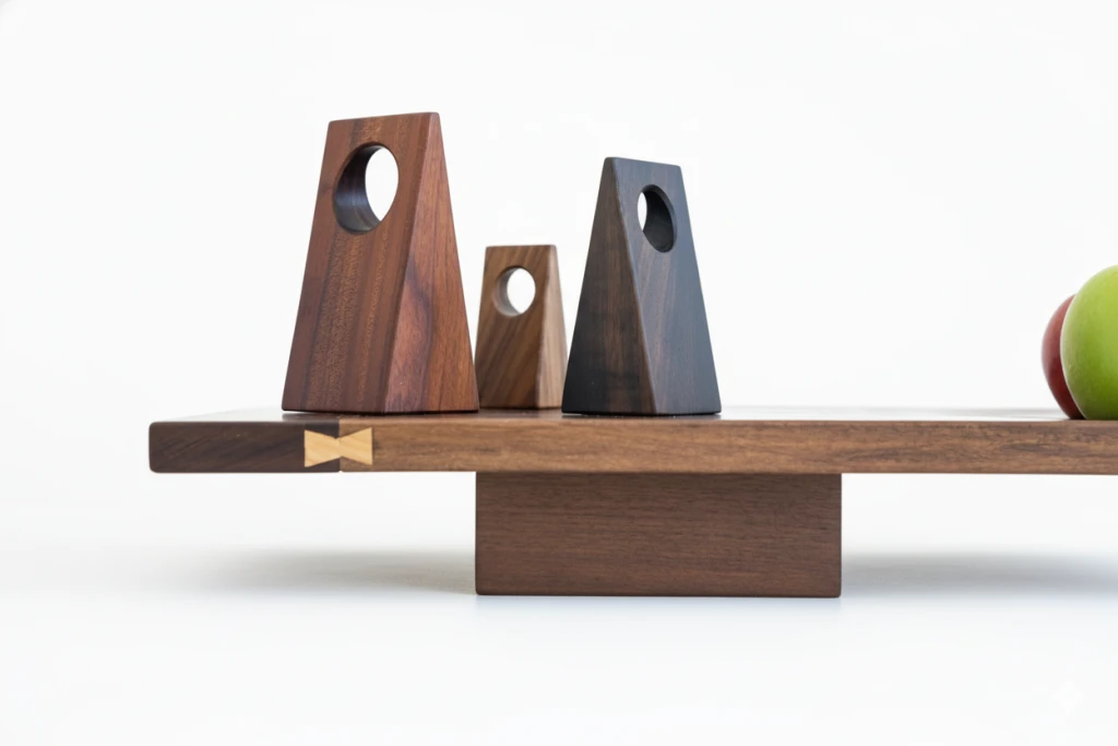 Confeccionado em madeiras maciças de demolição de imbuia e ipê. Acompanha trio de contrapesos em madeira de demolição.