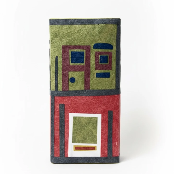 Luminárias, verdadeiras obras de arte em forma de luz, são esculpidas à mão, utilizando materiais de reuso como madeira e fibras vegetais, com o menor impacto possível no ambiente. O papel de fibra vegetal, colorido manualmente, matéria-prima essencial, permite tanto a reinterpretação de mestres consagrados quanto a origem de peças inteiramente originais.