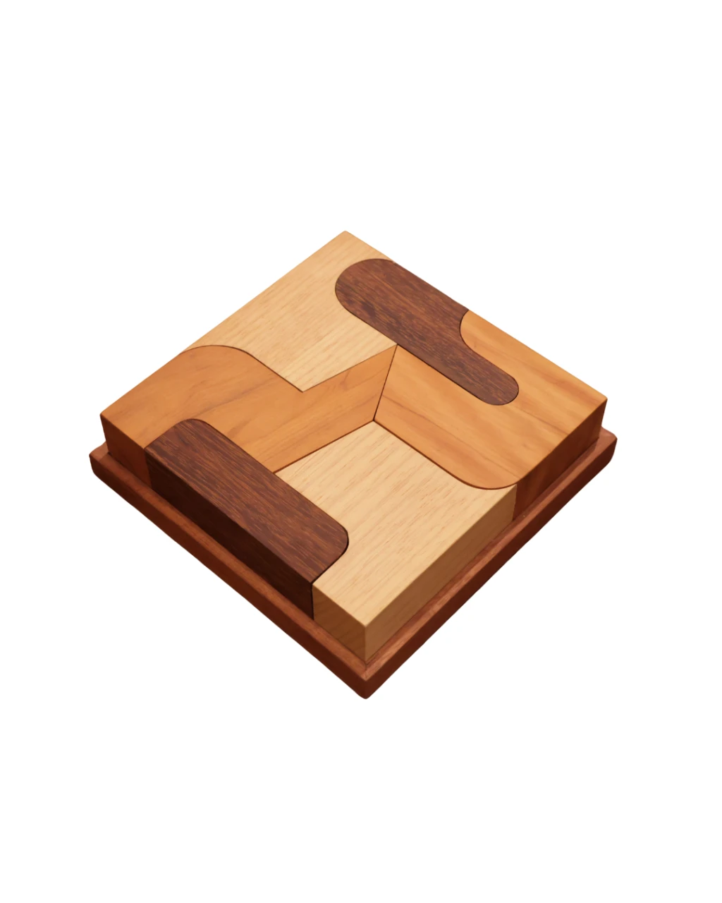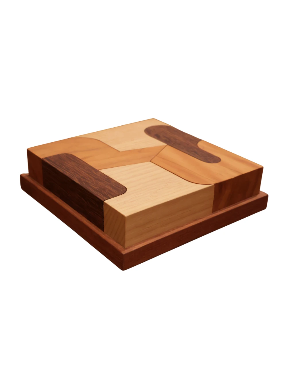 Marchetaria em madeira que reinterpreta o conceito de azulejaria através do encaixe de diferentes tonalidades como um tangram. Cada elemento pode ser desmontado e reorganizado, permitindo composições personalizadas.