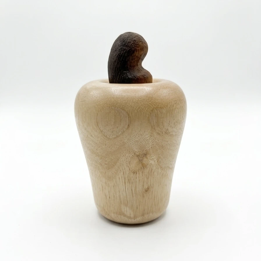 Caju torneado em madeira maciça, inspirado nas tradicionais caixas de doce vendidas em mercearias do interior nordestino. Produzido em madeiras nobres brasileiras. Acabamento em óleo mineral e cera orgânica que preserva a textura e aroma naturais. Cada peça é única devido às características próprias da madeira. Cada caju é vendido separadamente.
