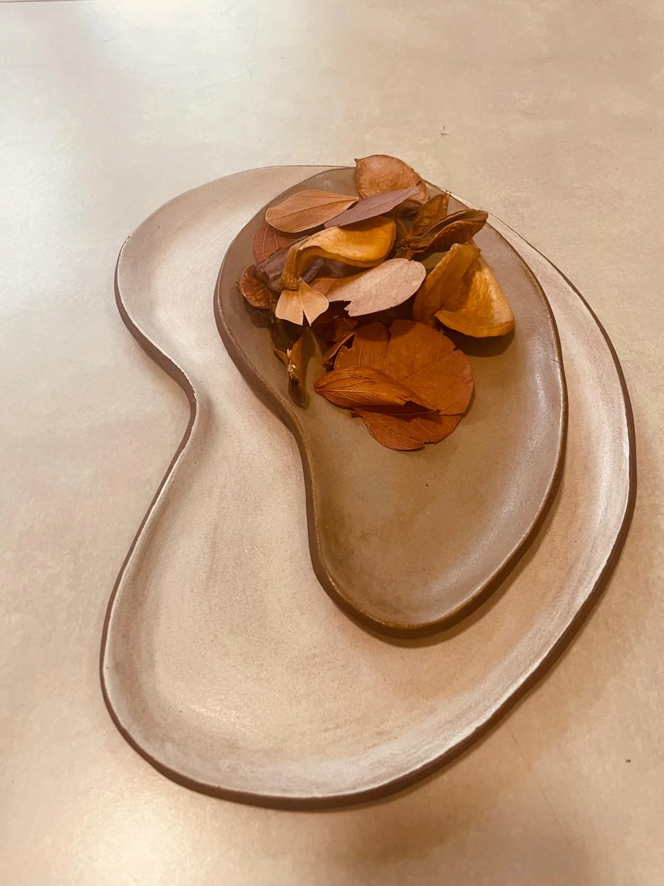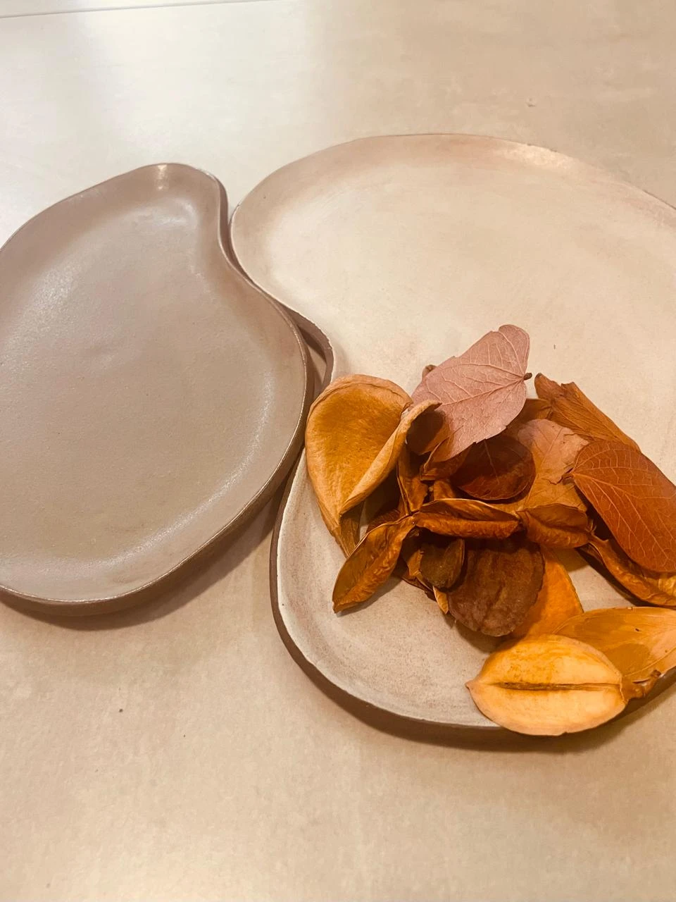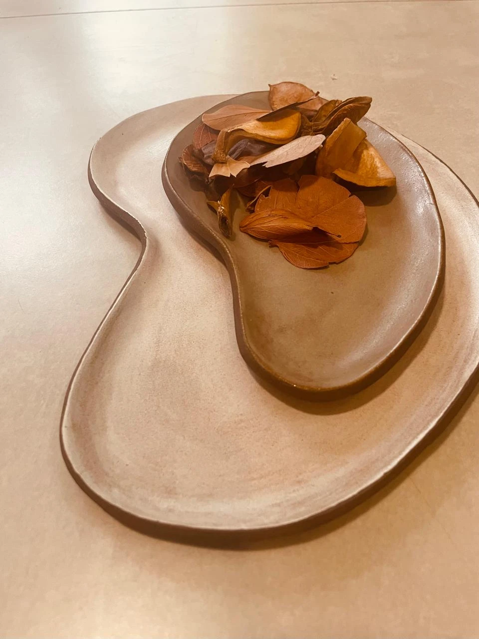 Este conjunto de pratos decorativos em cerâmica é uma verdadeira obra de arte que combina funcionalidade e estética. Com um design exclusivo, cada prato apresenta um formato orgânico que se encaixam de forma harmoniosa e refletem a rica tradição da cerâmica.