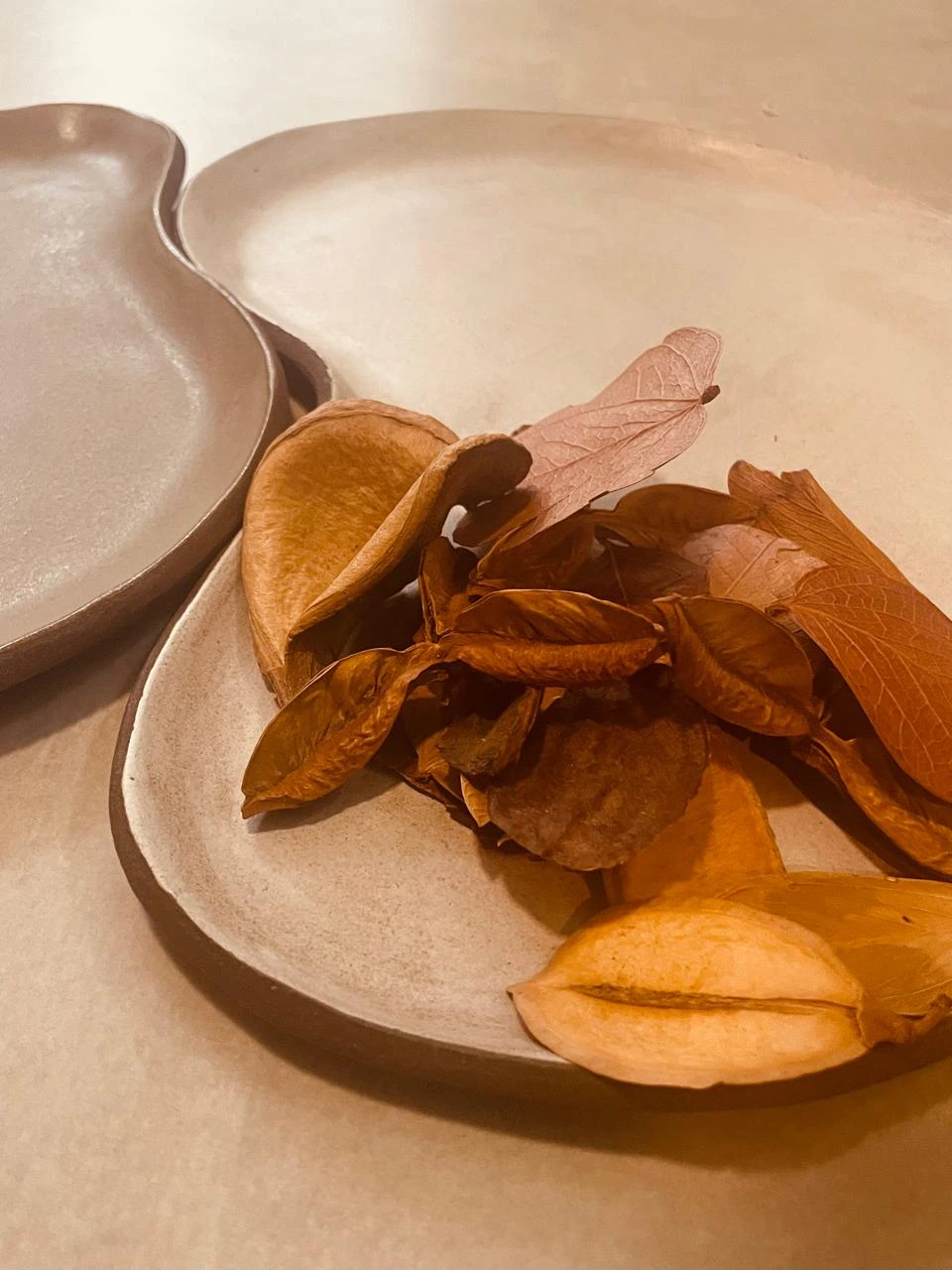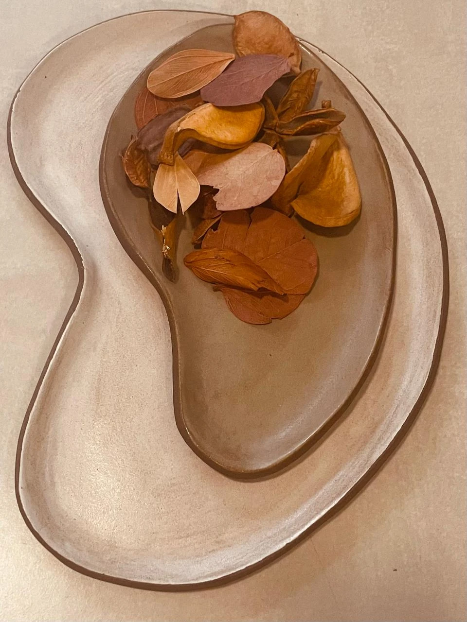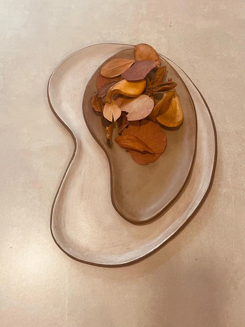 Este conjunto de pratos decorativos em cerâmica é uma verdadeira obra de arte que combina funcionalidade e estética. Com um design exclusivo, cada prato apresenta um formato orgânico que se encaixam de forma harmoniosa e refletem a rica tradição da cerâmica.
