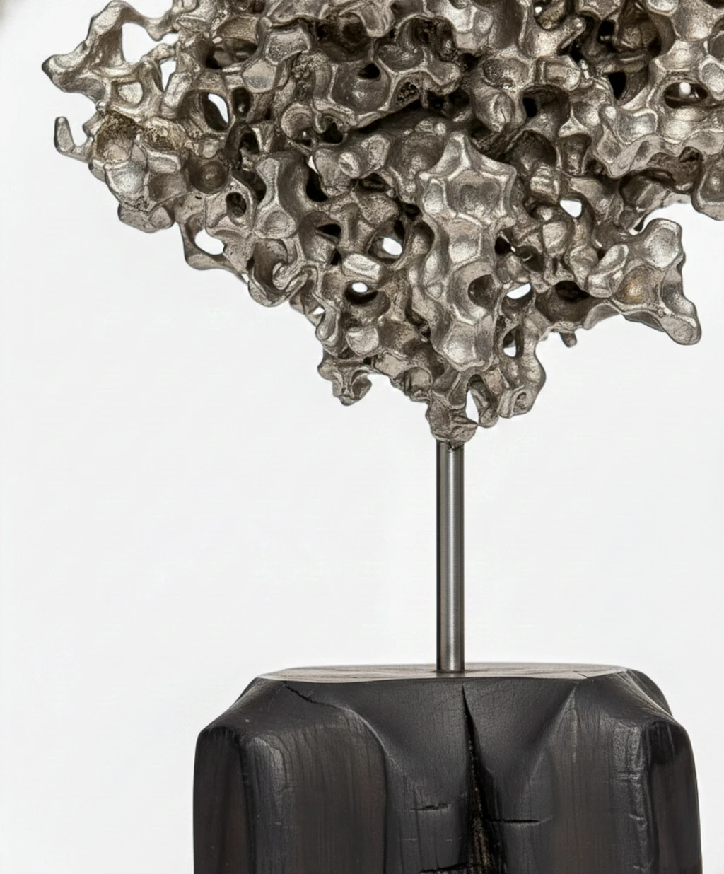 Peça escultural com estrutura superior em acabamento dourado que remete a formações coralinas, criando um jogo de texturas e vazados.