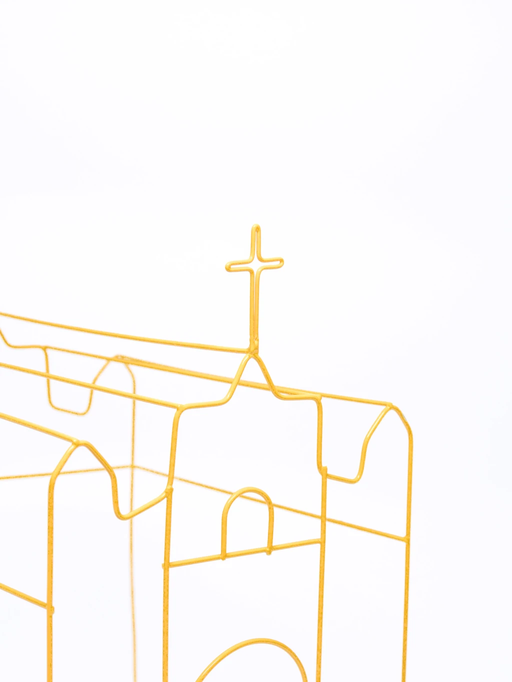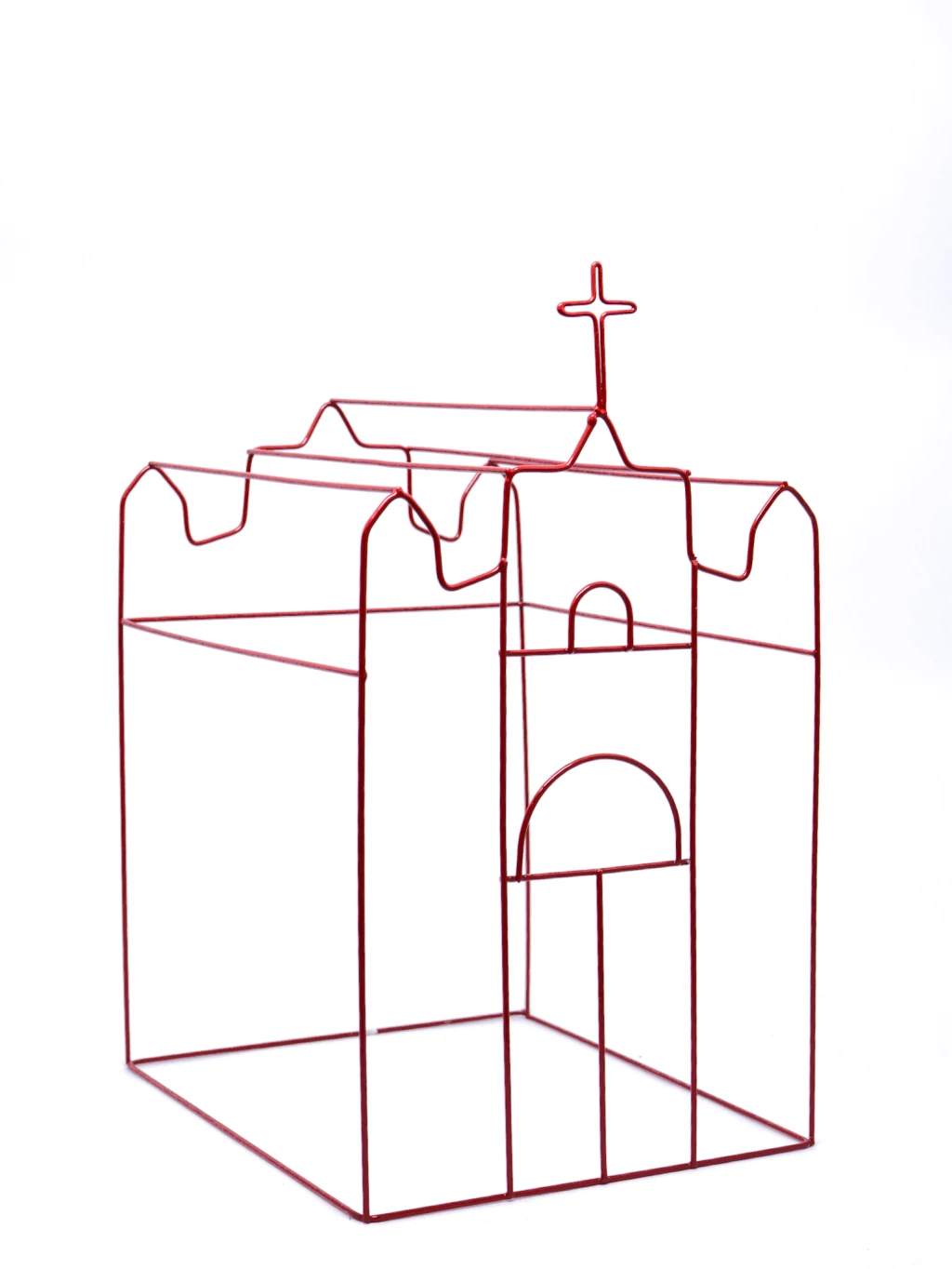 Nova série de esculturas inspirada no Nordeste brasileiro. As peças, produzidas em aço galvanizado com pintura eletrostática, são confeccionadas artesanalmente por mestres do carnaval carioca. As representações de casinhas e igrejas remetem à arquitetura popular nordestina, marcada pela influência de colônias europeias. Seus adornos e ornamentos dialogam com estilos como o neoclássico, o art nouveau, o gótico e o maneirista. Difundidas entre as décadas de 1920 e 1930, essas fachadas se destacam pela simplicidade das formas. As esculturas traduzem essa essência em linhas minimalistas que evocam os contornos originais das construções.