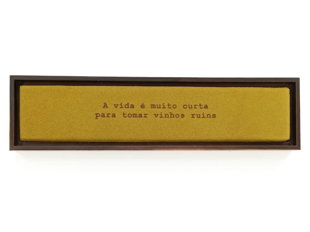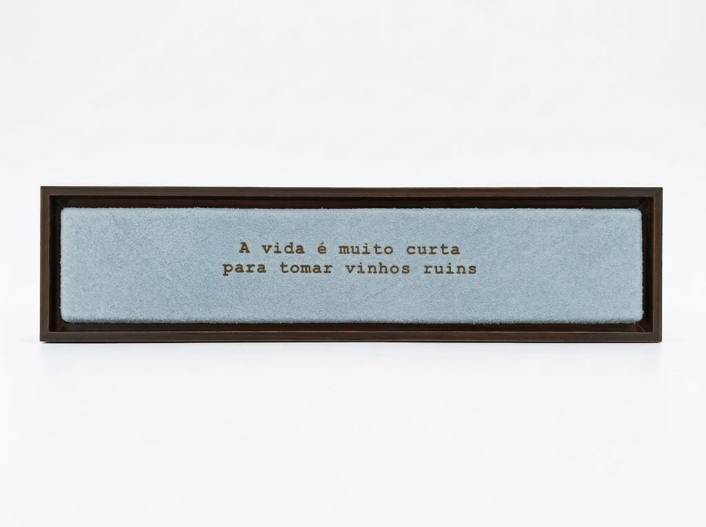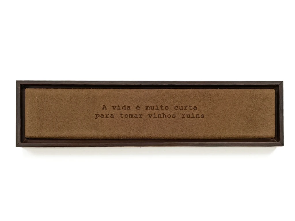 Régua em madeira e camurça: A vida é muito curta para tomar vinhos ruins