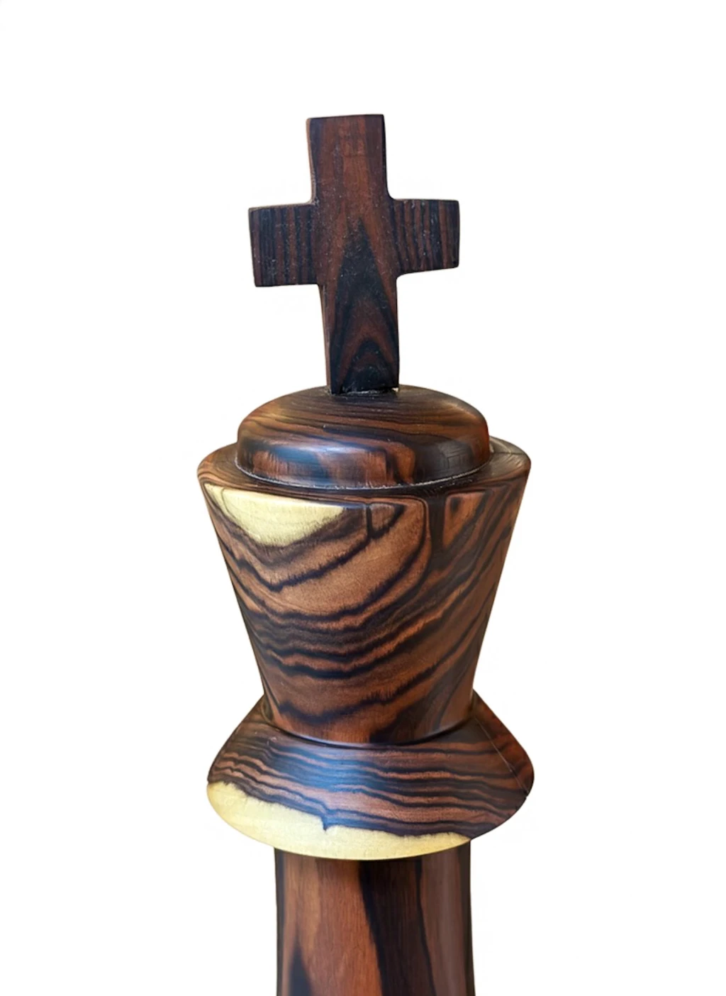 Peça de xadrez artesanal confeccionada em madeira nobre de Jacarandá Violeta.