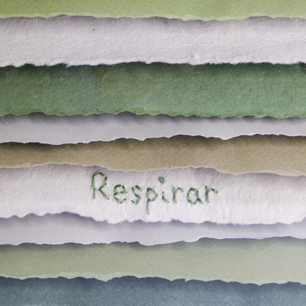 Respirar convida à pausa e à reconexão com o essencial. As camadas em tons de verde evocam o ritmo sereno da natureza e a sensação de equilíbrio que surge quando o ar flui livremente. Cada faixa de papel artesanal representa o ciclo constante da respiração, lembrando que inspirar e expirar é também um ato de presença e renovação.