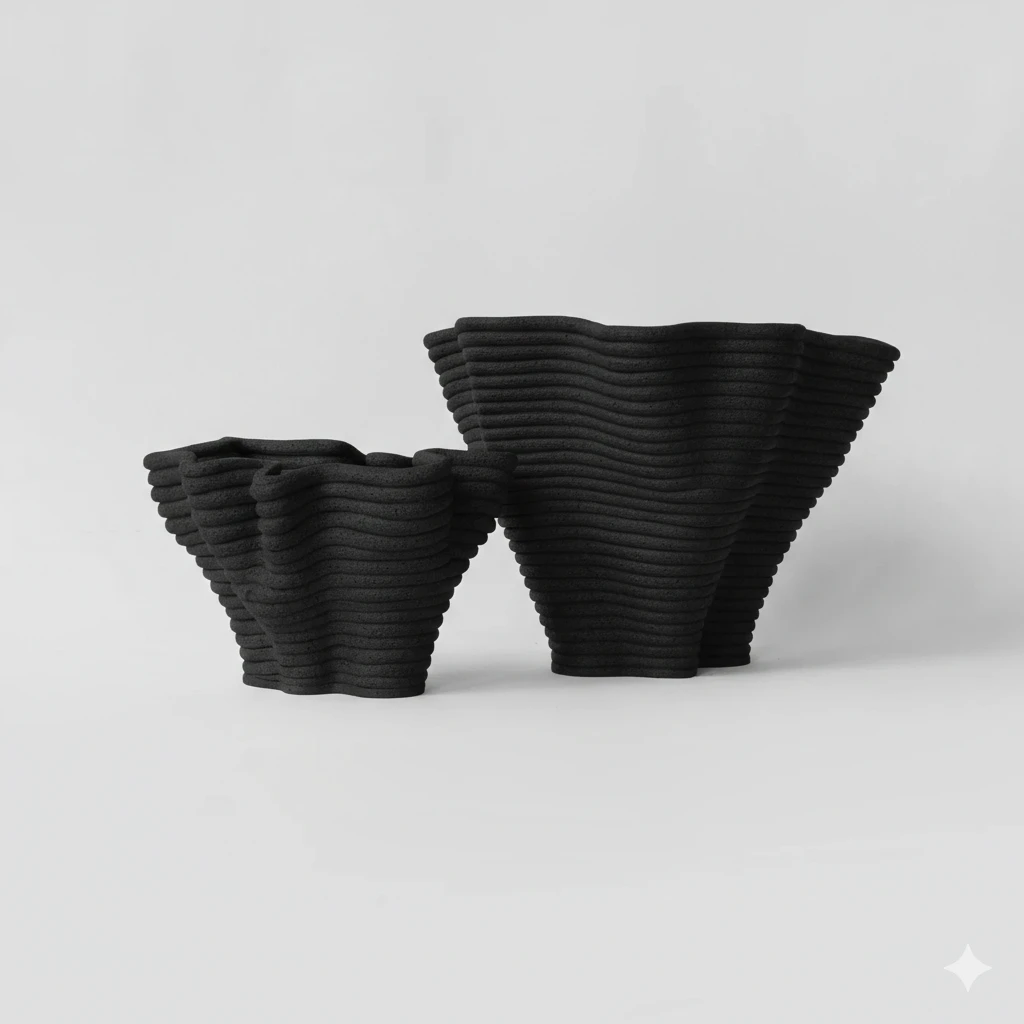 A escultura Ninho é desenvolvida com a técnica de acordelado a partir de camadas de vários fios de argila. Durante seu longo processo artesanal, linhas e curvas criam formatos que surgem do inconsciente do artista e da experimentação do seu processo criativo. Em um momento de muita presença e liberdade, temos peças únicas com formas singulares que somadas às texturas naturais da cerâmica compõem um objeto que ressoa a força da natureza através do seu design biofílico.