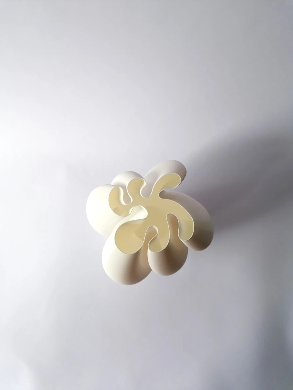 No final de sua vida, o pintor francês Henri Matisse desenvolveu um trabalho de recorte e colagem onde ele explorava formas orgânicas. Foi a partir desse trabalho do artista que a coleção foi desenvolvida. A tridimensionalização dos recortes deu uma nova perspectiva com nuances, sombras e formas que não existem nos trabalhos do pintor. Peça produzida em impressão 3D com PLA, polímero feito a partir da fermentação de vegetais ricos em amido.