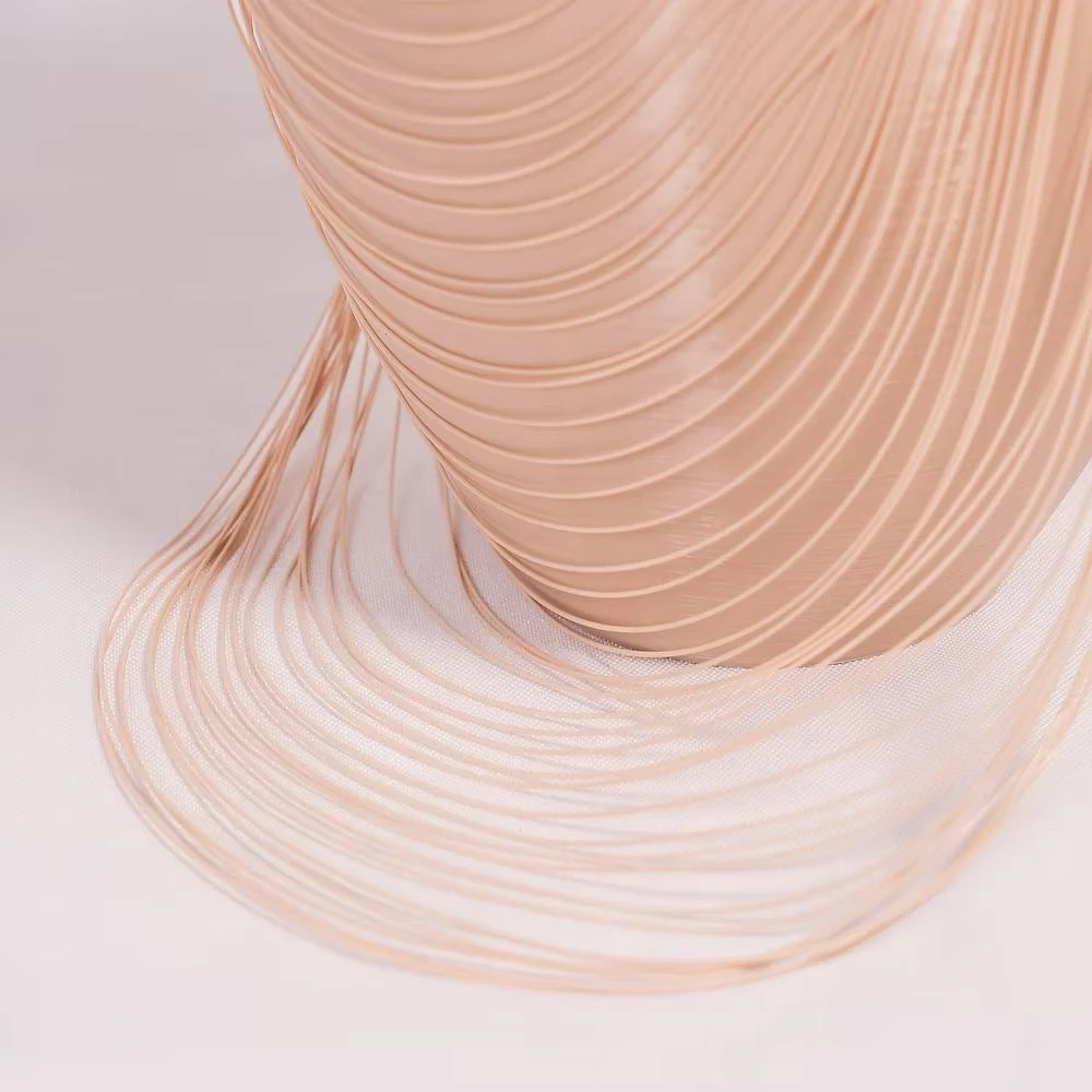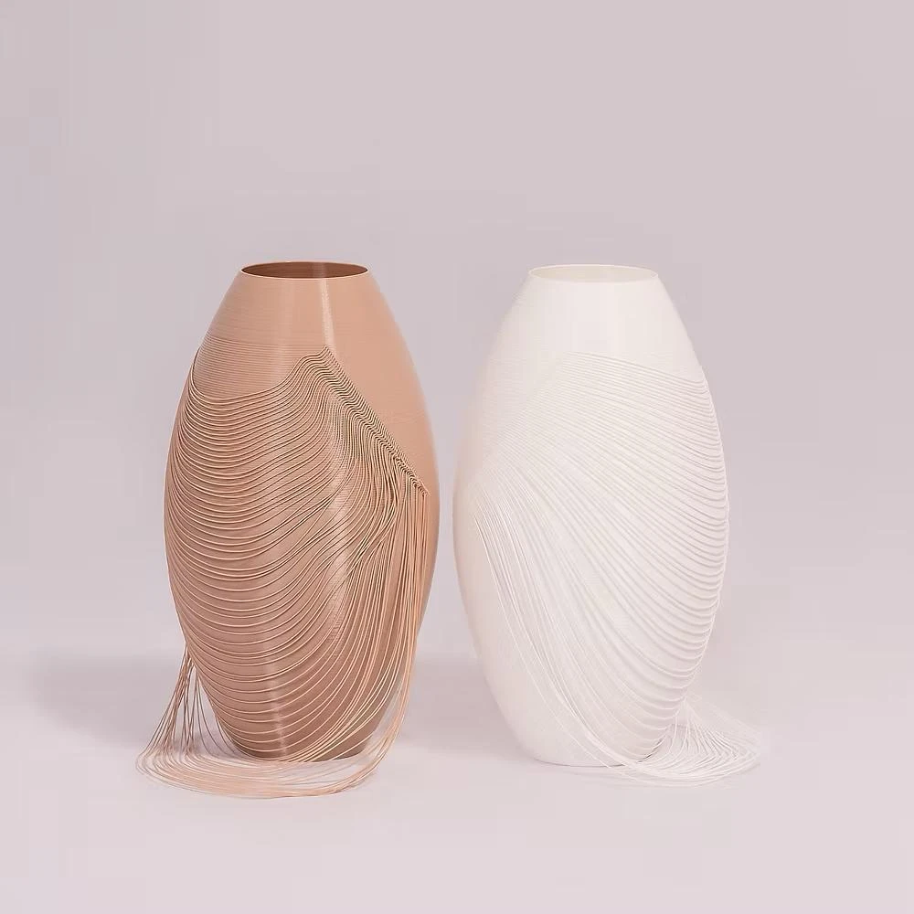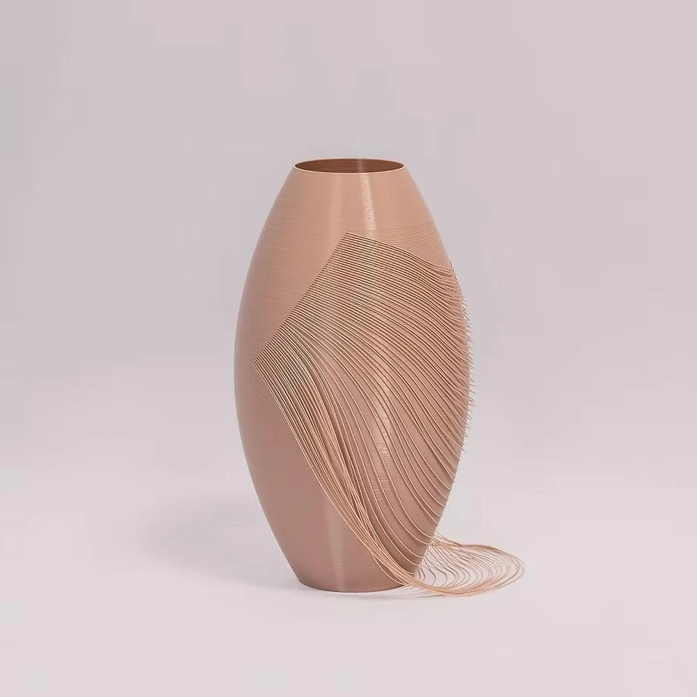 A coleção Desamparo nasceu da investigação das falhas da impressão 3D como linguagem estética, transformando erros em padrões únicos. O vaso V explora o fio em si, criando uma textura têxtil na aparência mas rígida na essência, delicada e caótica ao mesmo tempo, que repousa suavemente sobre a superfície como um tecido que se rende à gravidade. Peça impressa em 3D com PLA, um bioplástico feito de amido vegetal, reciclável e ecofriendly.