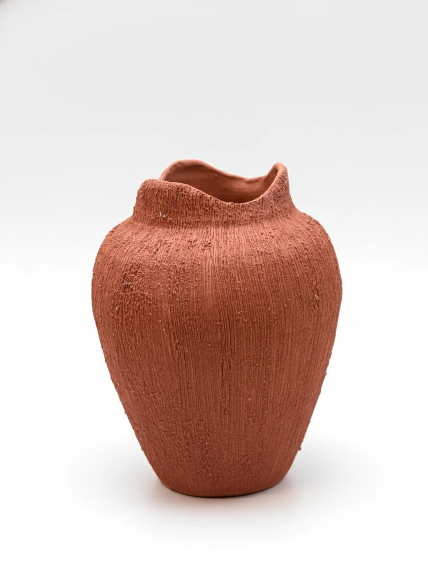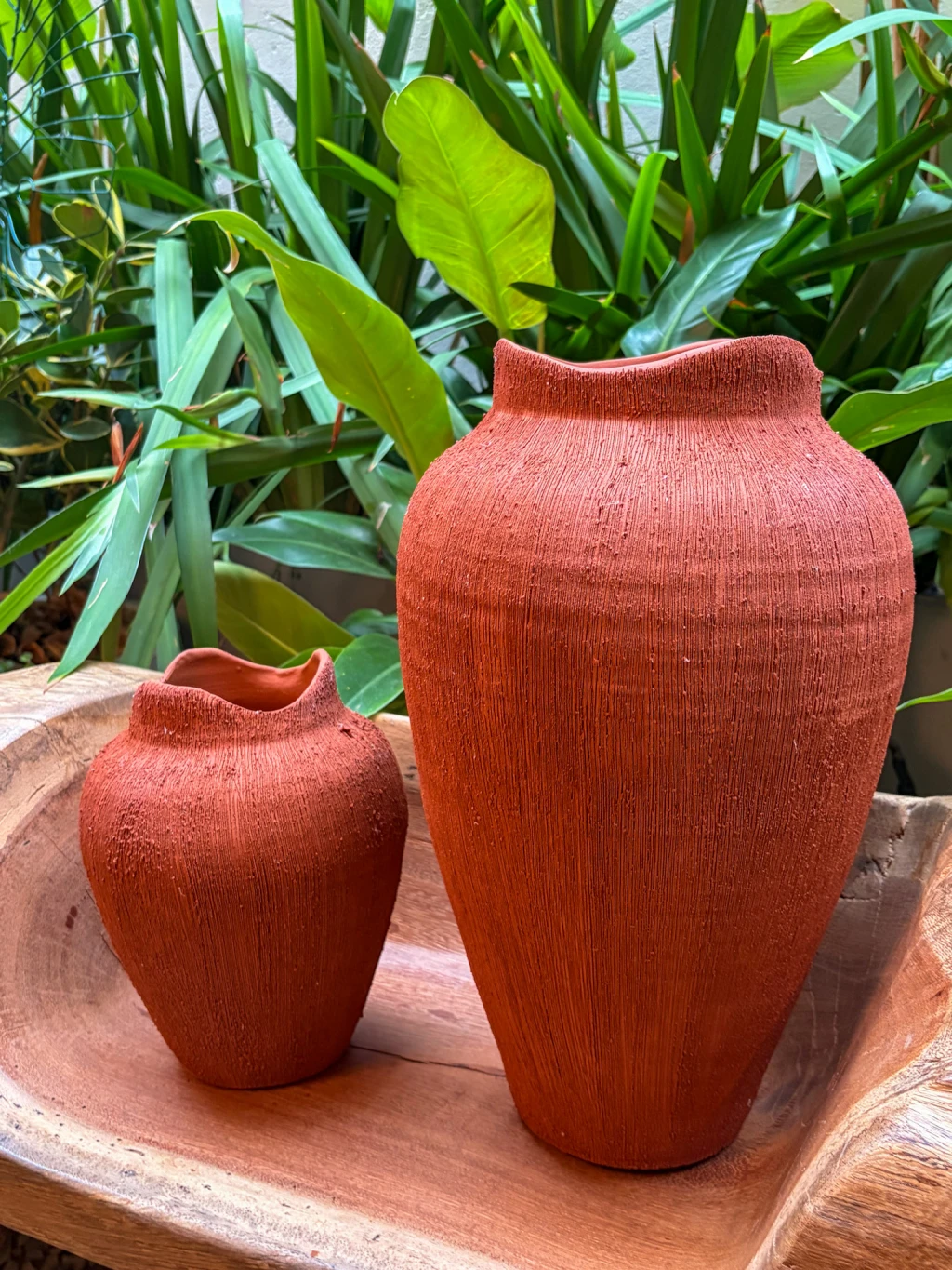 Vaso em argila rústica vermelha Duna Garrafa- Doiis Design