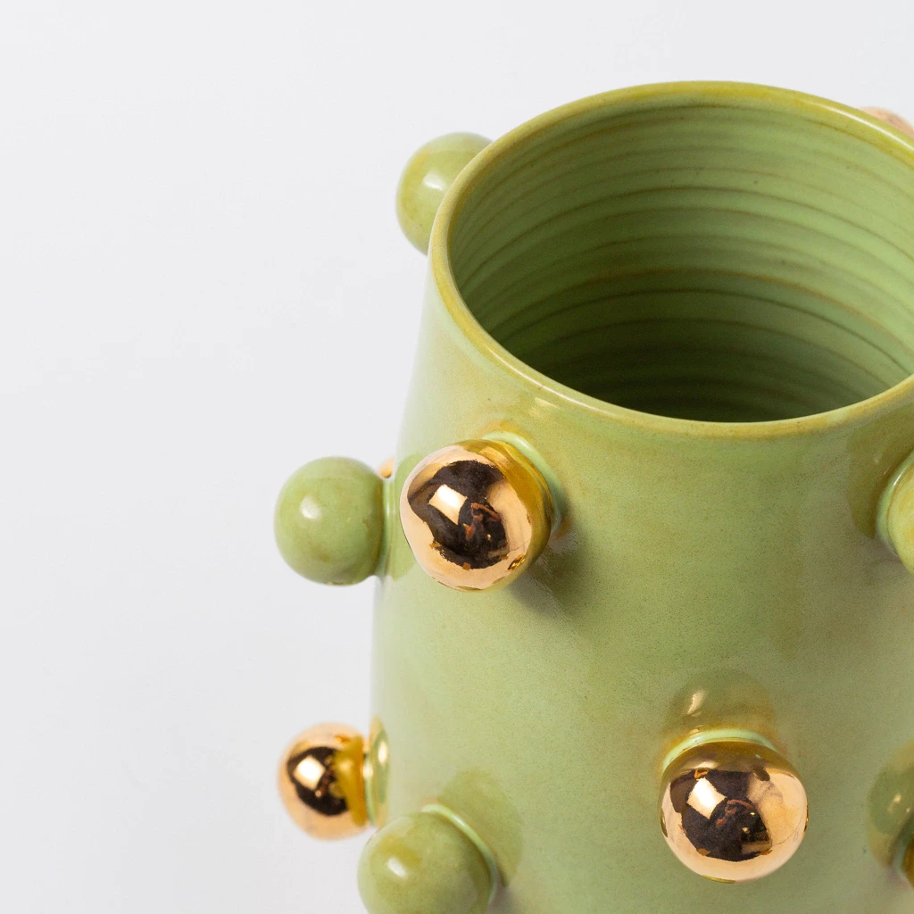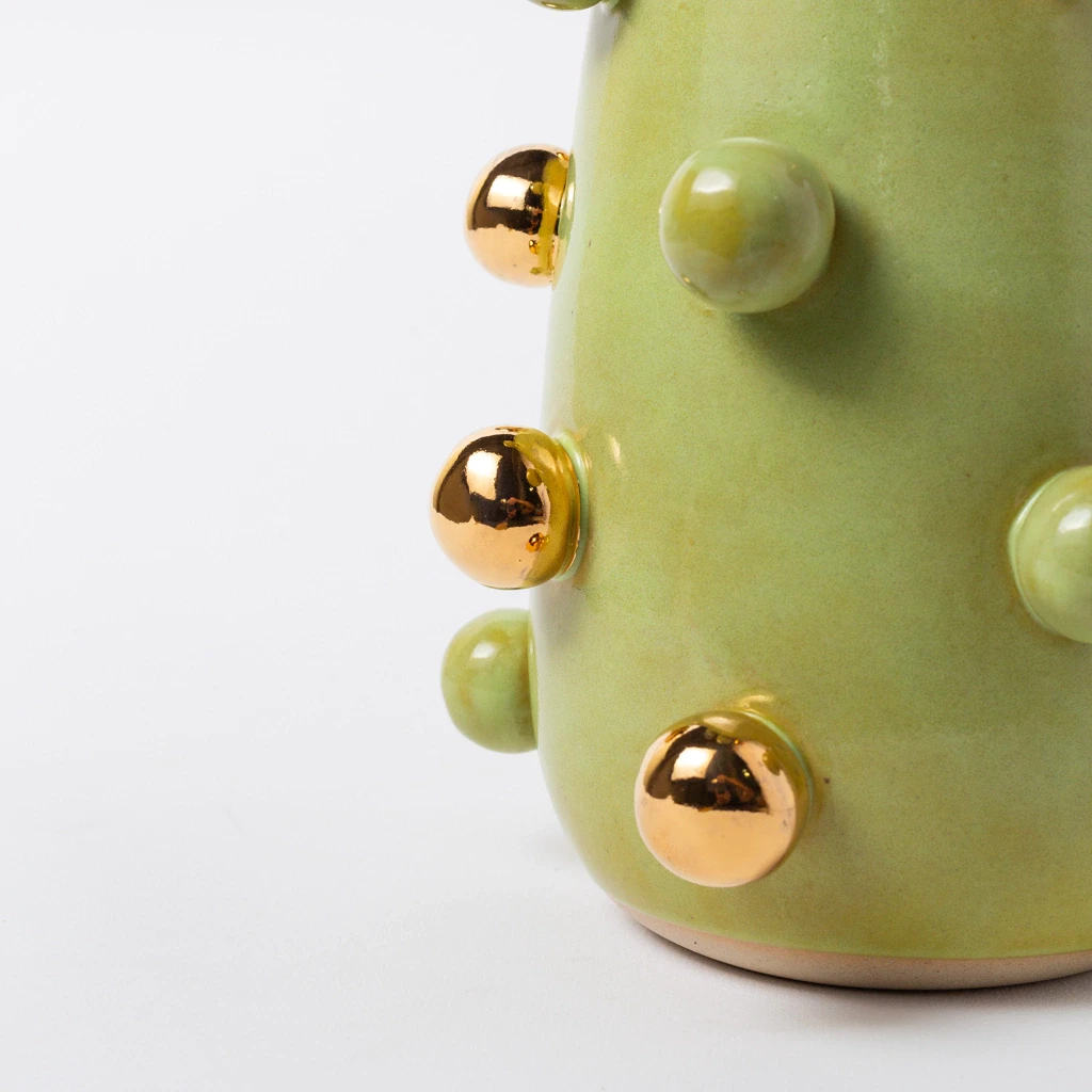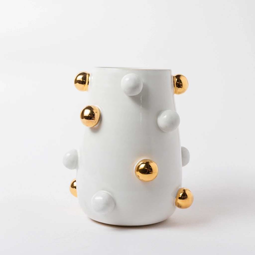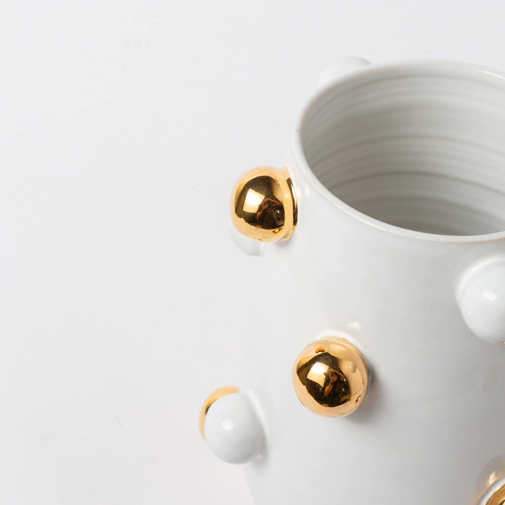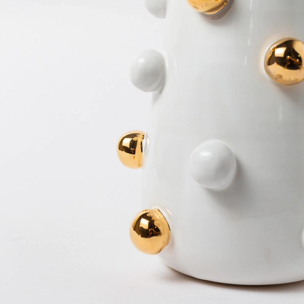 - Material: Vaso De Cerâmica Queimado Em Alta Temperatura, Com Bolotas Em Ouro.