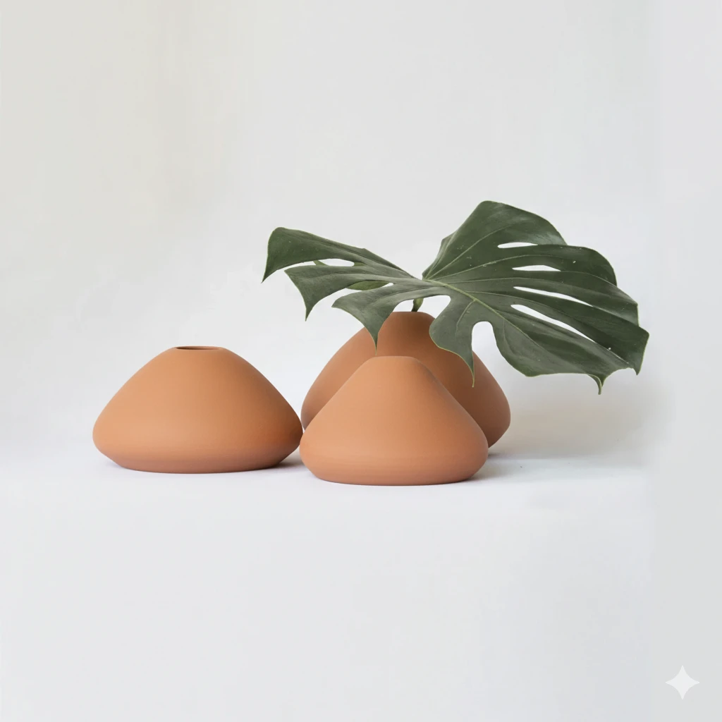 Vaso em argila rústica vermelha Duna Garrafa- Doiis Design