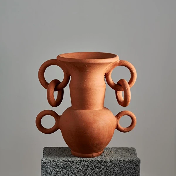 Vaso em argila rústica vermelha Duna Garrafa- Doiis Design
