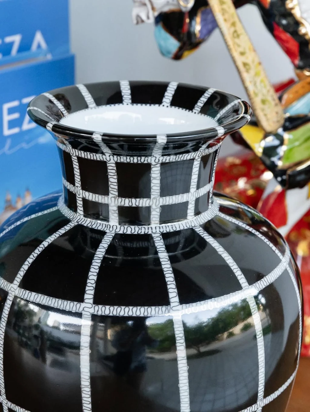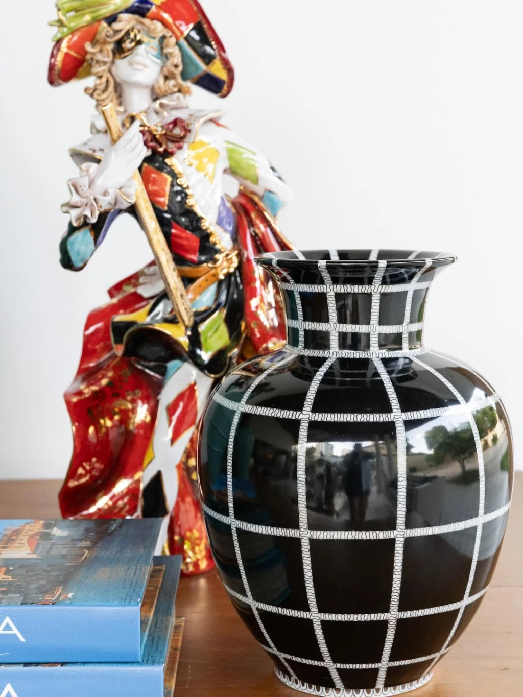 Peça única de porcelana, produzida artesanalmente, inspirada nos carnavais de Veneza e em sua tradição ornamental.