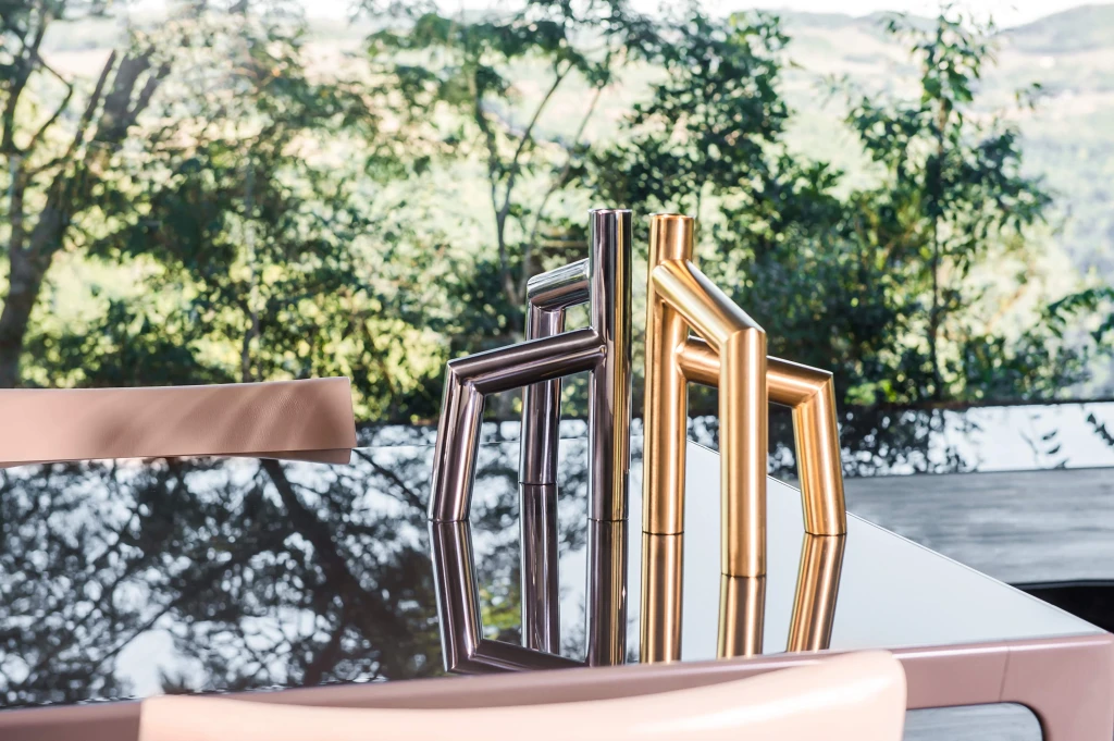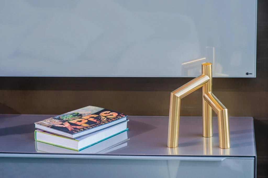 Seu desenho assimétrico faz do castiçal uma peça decorativa por si só. O interessante é que pode ser usado também como vaso para flor.