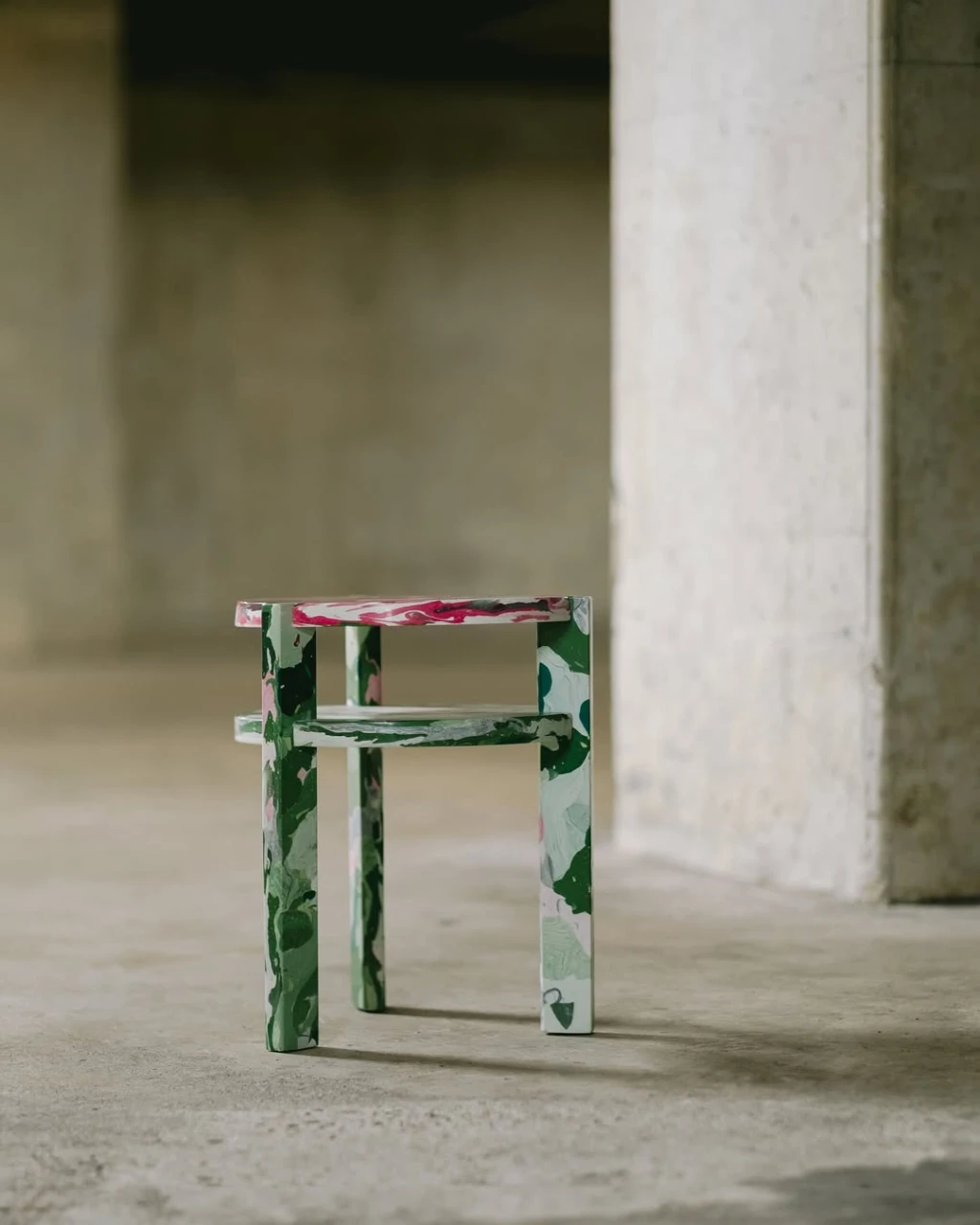Feita inteiramente em plástico reciclado, a Mesa Curupira é uma peça que exalta a cultura brasileira. Esta peça integrou exposições em Milão e Veneza neste ano.
