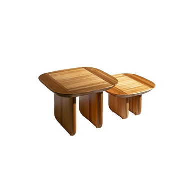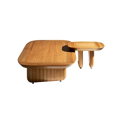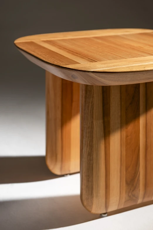 Sua estrutura, em madeira maciça colada, forma um bloco cujos os cantos arredondados deixam a base elegante evidenciando a forma orgânica. Sua notável característica reside na harmoniosa combinação de solidez e leveza.