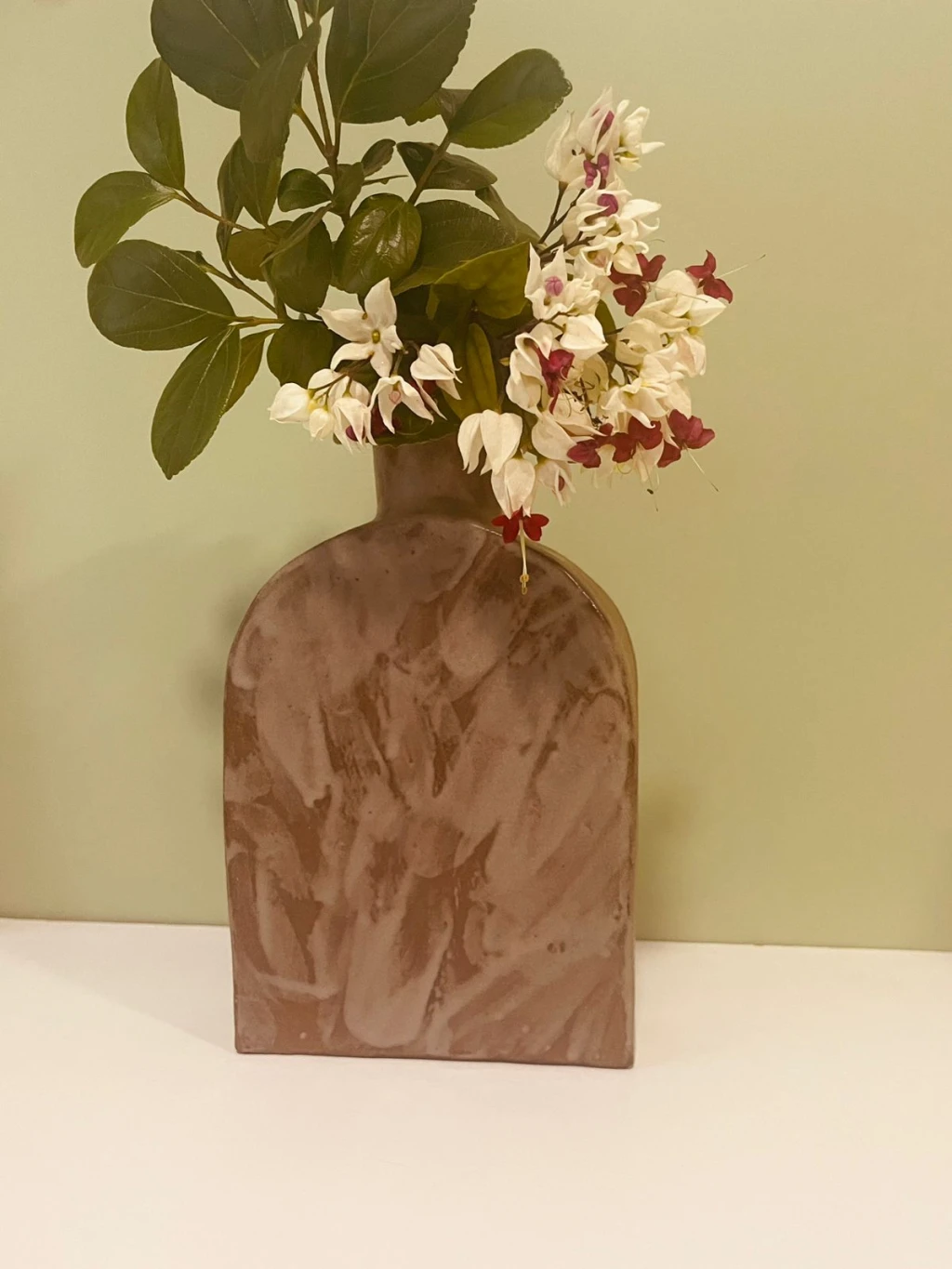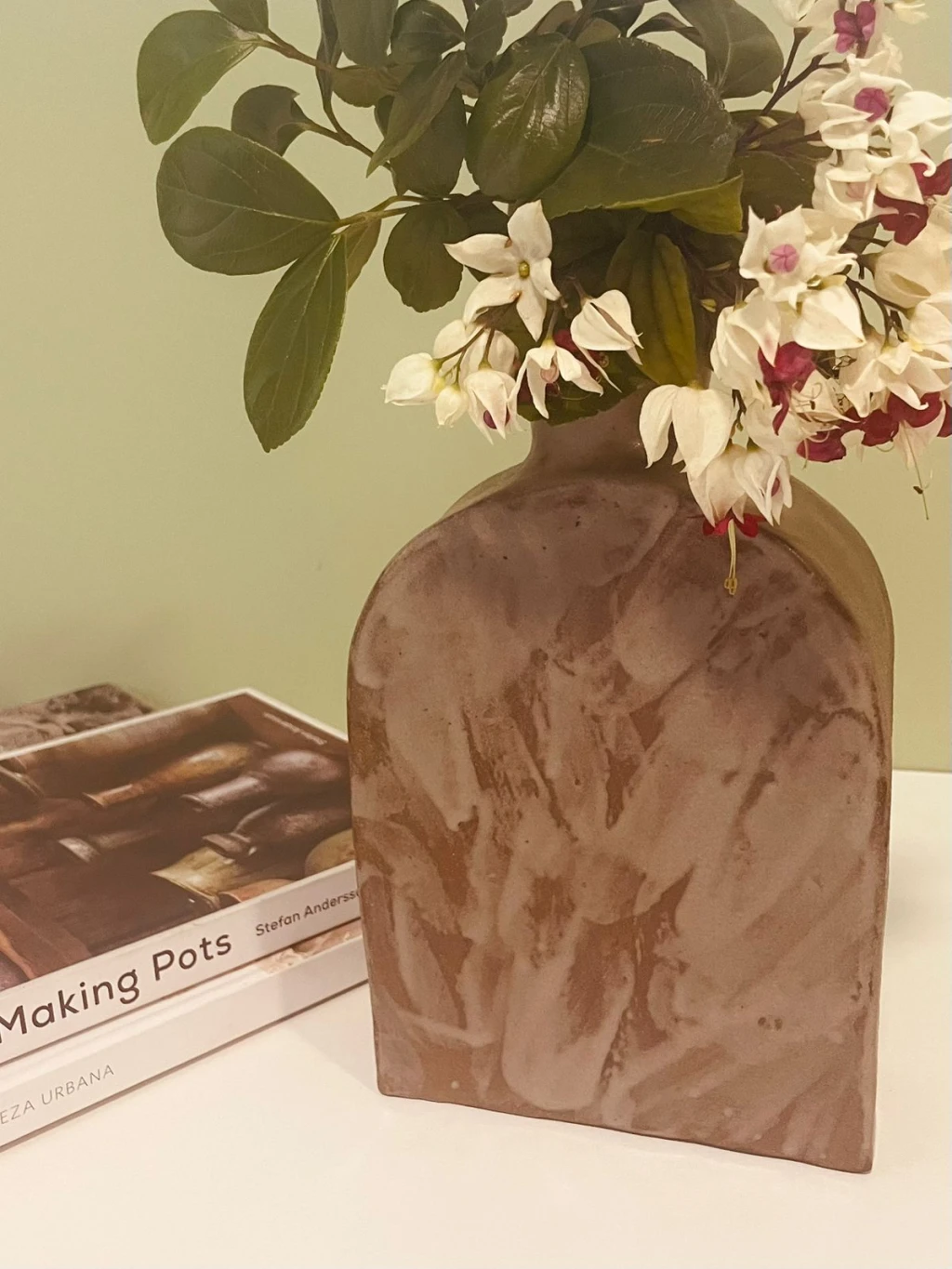 Com forma orgânica e estrutura sólida, este jarro foi modelado em argila escura e decorado à mão com gestos que evocam folhas ao vento. A textura fluida contrasta com a geometria do corpo, criando uma peça que é ao mesmo tempo expressa força e delicadeza. Ideal para compor ambientes com presença natural, personalidade e alma.