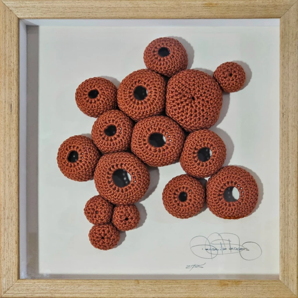 A coleção de obras de arte "Fundo do Mar" explora o universo marinho através do crochê, com uma abordagem única que mescla o lúdico e a efemeridade dos seres aquáticos.