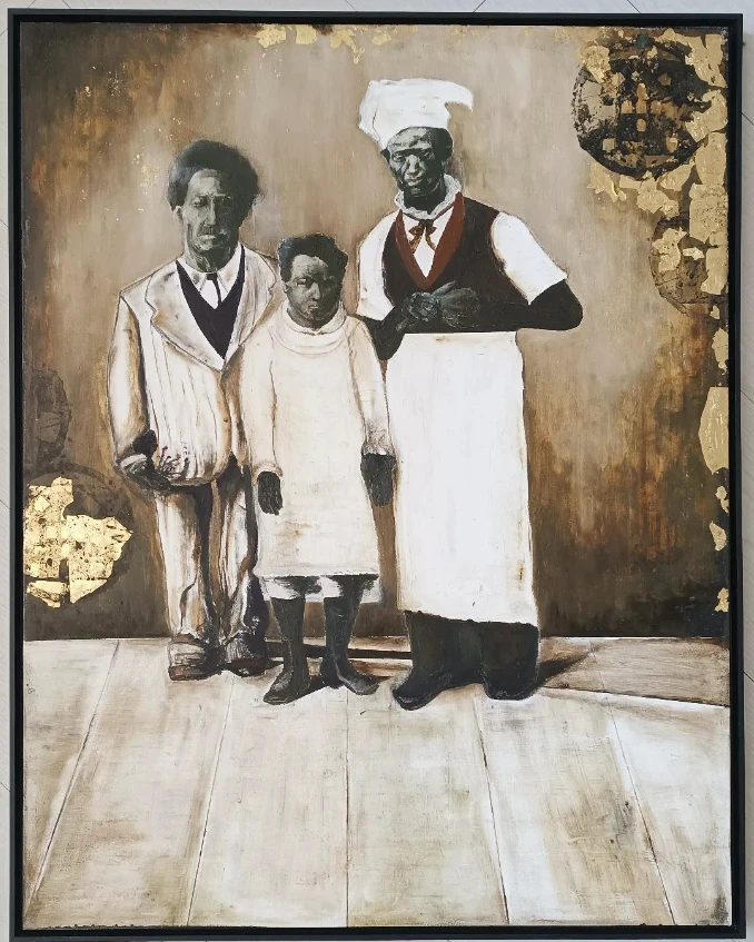 Óleo em bastão, nanquim, folha de ouro s/ linho