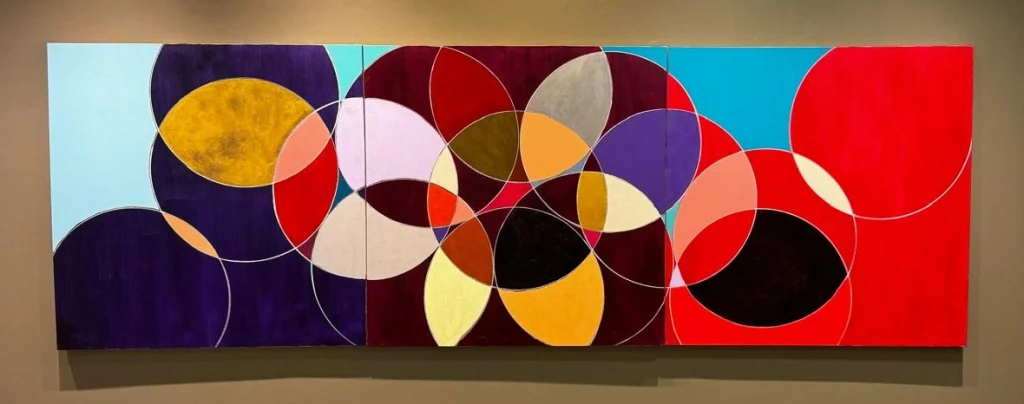 A obra é um tríptico. Cada parte possui 90x90cm.