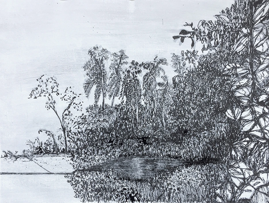Nanquim sobre tela (sem chassis e sem moldura, dimensões são da tela total, não da imagem).