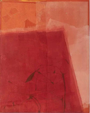 Acrílica, lápis e colagem de organza de seda sobre tela
