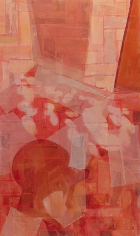 Acrílica, lápis e colagem de organza de seda sobre tela