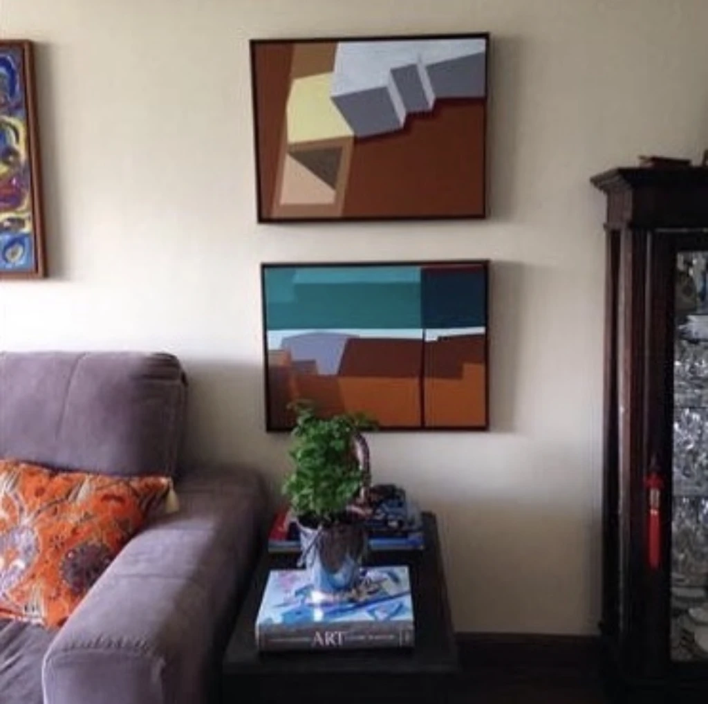 Série de 4 pinturas acrílica sobre tela criada especialmente para a Feira Artigo Rio em 2013. São desdobramentos pictóricos a partir de fotografias que fiz de coberturas de prédios da minha vizinhança.