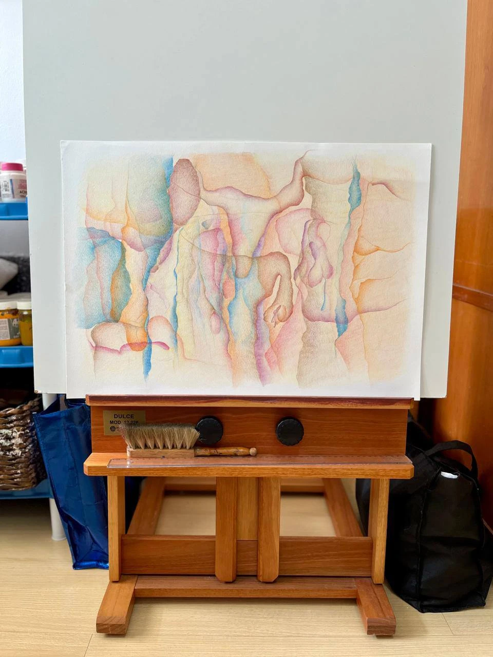 Esses trabalhos apresentam uma espécie de fluxo com transparências de cores e formas que se interpenetram e que vão surgindo no próprio processo, criando uma nova paisagem subjetiva que deixa em suspenso algo que ainda pode vir a se definir ou acontecer.