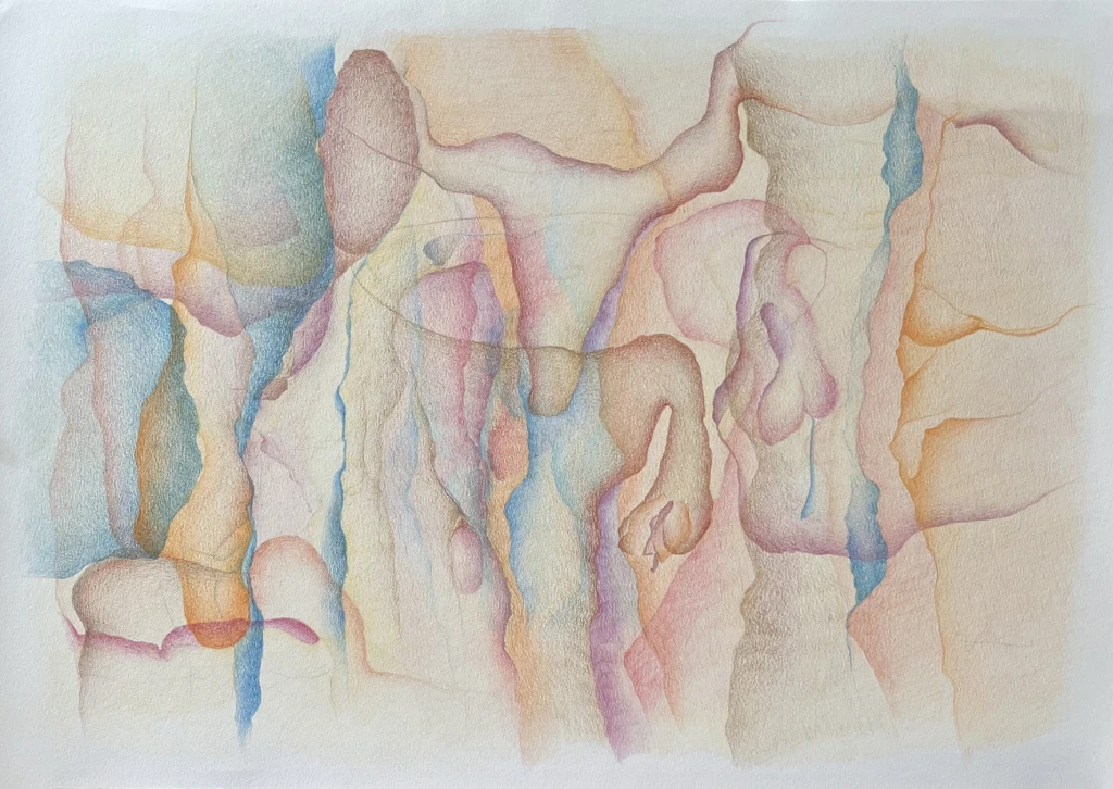 Depois de um longo período em que me dediquei em criar imagens a partir de recortes do mundo através de um processo de colagem de formas e estudos de paletas cromáticas, onde minhas referências eram as paisagens urbanas, atualmente venho trabalhando em desenhos orgânicos e intuitivos, quase meditativos e sem prévia estrutura.