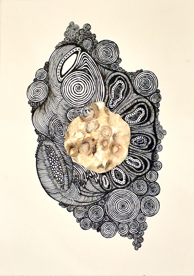 Nanquim e conchas/sedimentos naturais s/ papel 300g