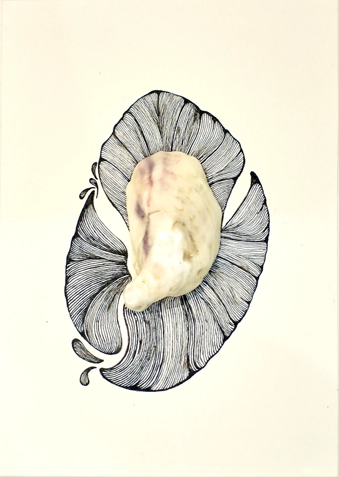 Nanquim e conchas/sedimentos naturais s/ papel 300g