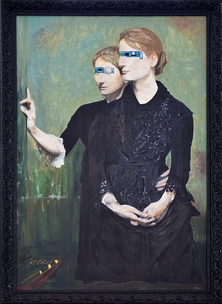 Oleo em bastão, giz pastel e caneta hidrográfica sobre linho
