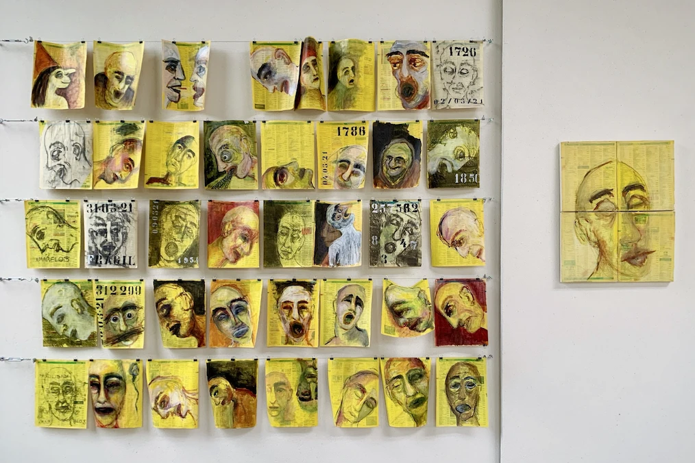 Com curadoria de Fábio Magalhães, a mostra reúne pinturas em tela e obras feitas com materiais de rejeito, radiografias e páginas amarelas de listas telefônicas, que convidam o público a mergulhar em suas histórias e emoções