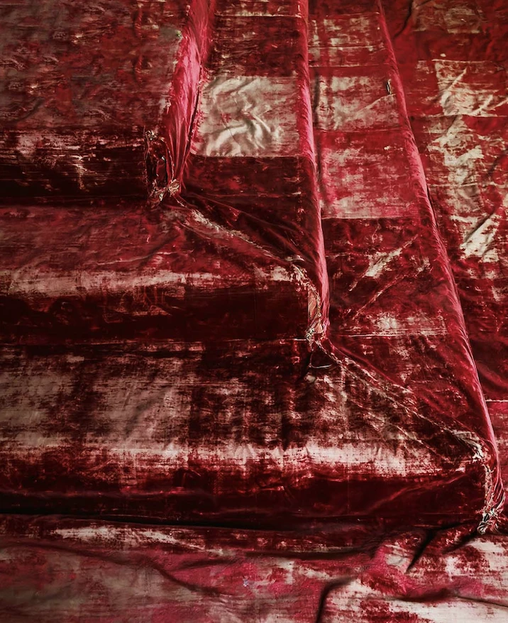 A Nara Roesler São Paulo tem o prazer de convidar para a abertura da exposição “Sangue Azul”, com novos e inéditos trabalhos de Marcos Chaves, no dia 7 de junho de 2025, às 11h. As obras são resultado de uma pesquisa iniciada em 2013, em que o artista imprimiu em tapetes fotografias que fez de tecidos variados da Coleção Eva Klabin, dentro do 17º Projeto Respiração, na Fundação Eva Klabin, no Rio de Janeiro. Na grande sala de pé direito duplo, no lado esquerdo da galeria Nara Roesler, Marcos Chaves vai criar um ambiente imersivo com baixa iluminação, e foco nos tapetes pendurados nas paredes, todos produzidos em 2025. As dimensões das obras variam de 200 x 266 cm a 150 x 112,5 cm. Cobrindo todo o chão estará um carpete de 5,90 m x 8,39m, versão em grande escala de uma fotografia de 2013, feita de um veludo da Coleção Eva Klabin. Os tapetes nas paredes, em tons de vermelho, reproduzem as fotografias feitas pelo artista do chão acarpetado de locais históricos europeus, como o Palazzo Doria Pamphilj, construído em Roma, no século 16; a escadaria que leva ao único trono existente de Napoleão Bonaparte (1769-1821), no Castelo de Fontainebleau, na França, residência dos reis franceses, e que data dos primórdios do século 12; e a Ópera Garnier, projetada durante o reinado de Napoleão III (1808-1873), o décimo-terceiro palácio a abrigar a Ópera de Paris, fundada por Luís XIV.
